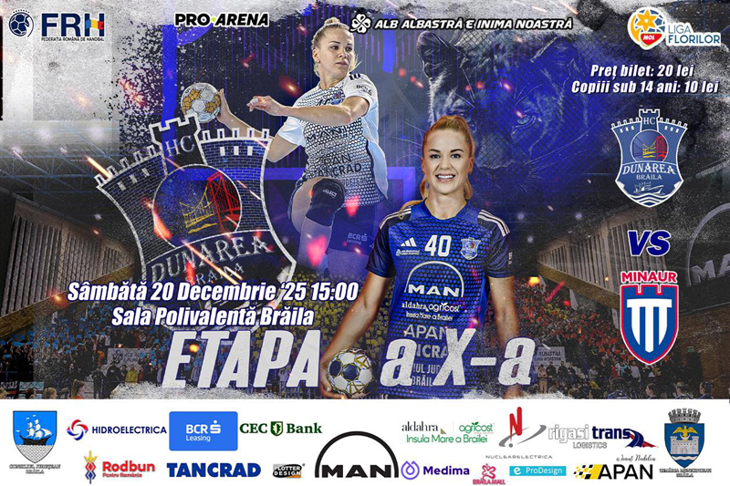 League Florilor revine în acest weekend cu meciul dintre HC Dunărea Brăila și CS Minaur Baia Mare, programat sâmbătă, 20 decembrie 2025, de la ora 15:00. Partida se desfășoară în Sala Polivalentă din Brăila și va fi transmisă în direct pe Pro Arena, clubul brăilean încurajându-și fanii cu mesajul „Ne vedem la sală! Hai, Dunărea!”.